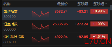 3月25日消息,港股三大指数集体上涨。截至收盘,恒生指数涨1.09%,报25335.95点,恒生科技指数涨1.91%,国企指数涨0.98%。盘面上,科网股涨跌不一,美团涨超13%,京东、阿里巴巴涨超4%,腾讯跌超1%;核电股强势选股方法,中核国际涨超8%;新消费概念股下挫,泡泡玛特跌超22%。