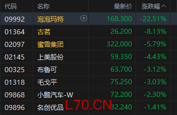新消费概念股下挫,泡泡玛特跌超22%。在2025年度业绩发布会上,公司创始人、董事长兼CEO王宁提出2026年“努力做到不低于20%的成长速度”,并强调“今年不追求激进的、增收不增利的成长,追求公司长期、稳健的成长”。在2025年营收同比增长184.7%、净利润同比增长308.8%的超高基数背景下,这一相对保守的增速目标引发了市场剧烈反应。