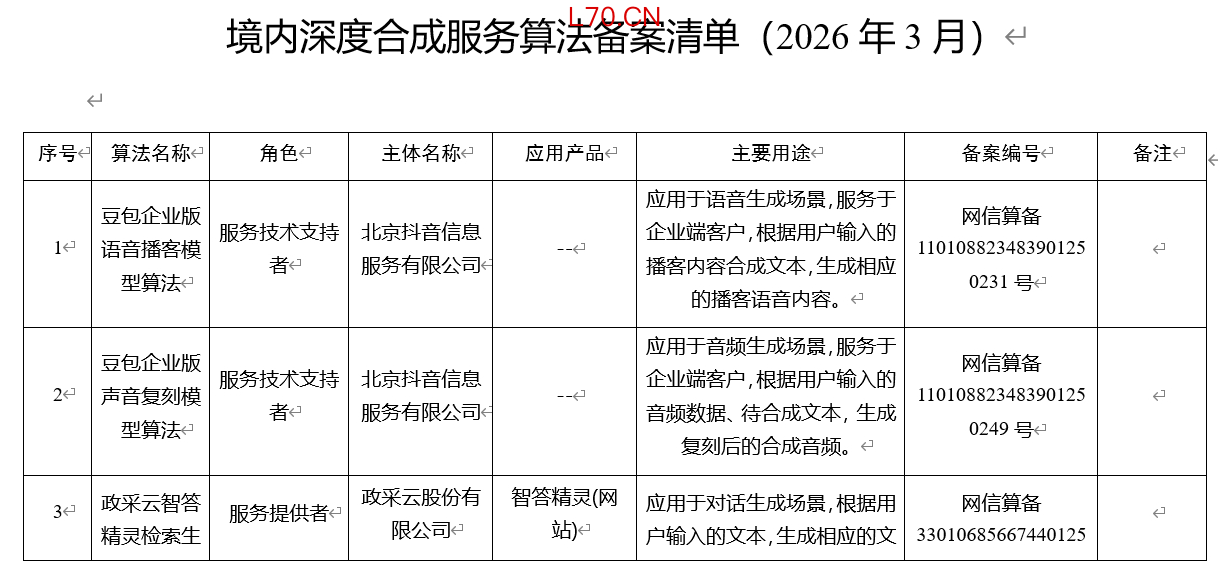 国家互联网信息办公室发布第十六批深度合成服务算法备案信息