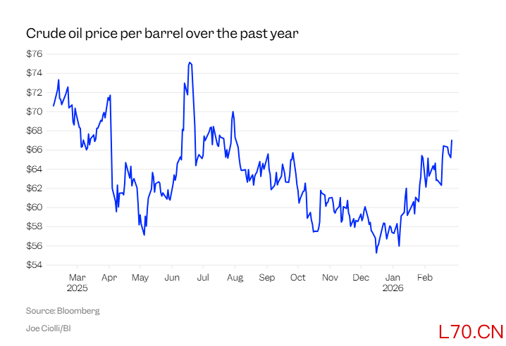该行表示,投资者应该预期油价将在周一测试每桶100美元的水平,这意味着有大约35%的上涨空间。国际原油价格在经历了去年的暴跌后,于2026年稳步回升。国际基准布伦特原油价格今年迄今已上涨20%。
