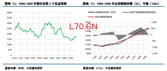 1990-1999年,世界经济迎来全球化、多元化的重塑成长,亚洲、欧洲、南美经济陆续进入阵痛期:苏联解体、俄罗斯从政变到完成政权更迭,日本全球第二大工业大国的神话破灭,欧盟成立并重塑欧洲货币体系,亚洲经历了金融风暴后深化改革等等;当中,1996-1999年全球铜供需严重过剩,进一步施压铜价走跌。