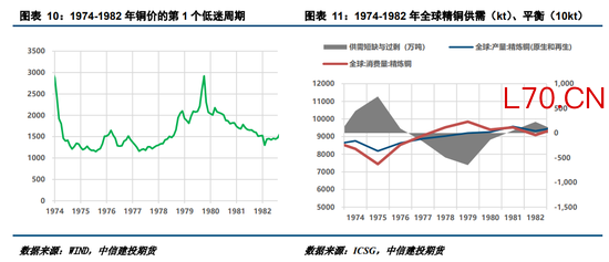1974年4月-1982年,两次石油危机引发的全球经济衰退,铜价表现长期低迷;