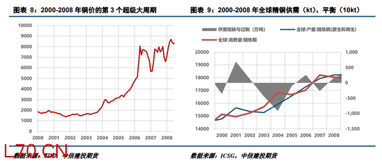 2000年至2008年,铜价能进入到第3个超级大周期,得益于中国经济与工业的高速发展;而全球铜的供需平衡变化较为反复,对行情驱动不大。