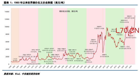 当下,世界经济全球化、多元化的竞争格局深入,一方面围绕有限资源、能源的争夺,巩固了重要金属的战略地位;另一方面科技等生产要素的创新,推动着产业链深入变革,不断涌现绿色能源、AI等新质生产力及应用,对大宗商品需求存在显著的拉动。综合世界铜史归因分析,认为当前的铜价或许处于2020年以来的10年超级大周期规律中,且具备进一步上涨的结构基础。