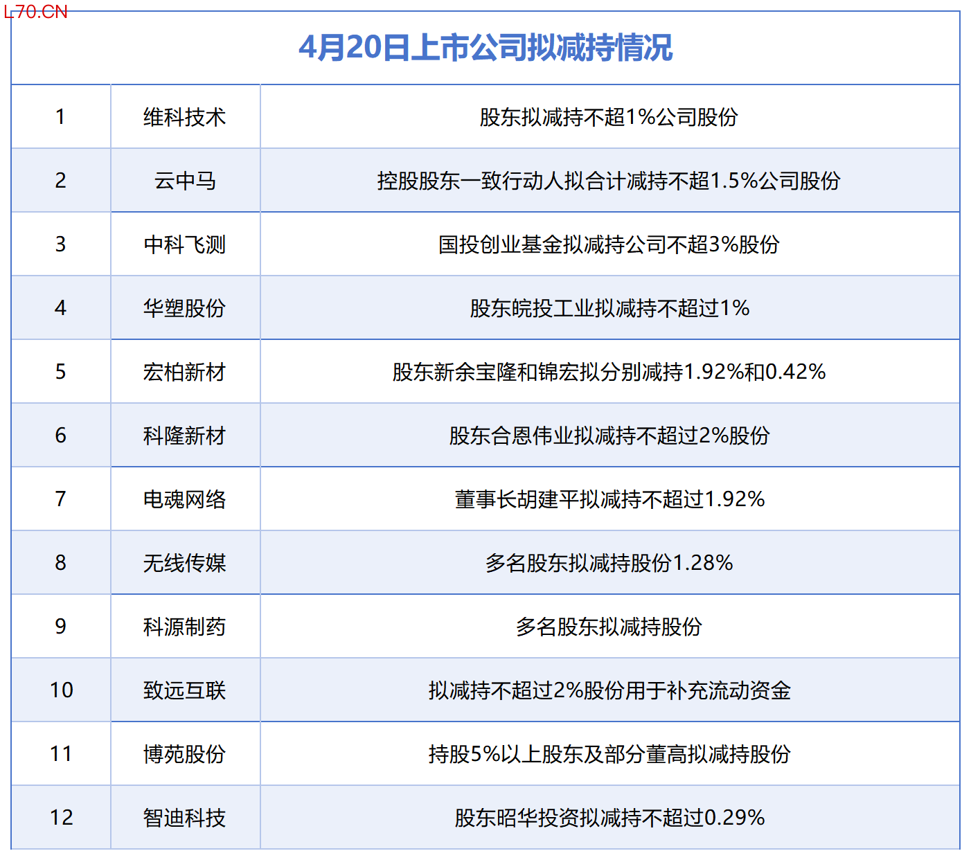 4月20日增减持汇总:中科飞测等12股拟减持,暂无A股增持(表)